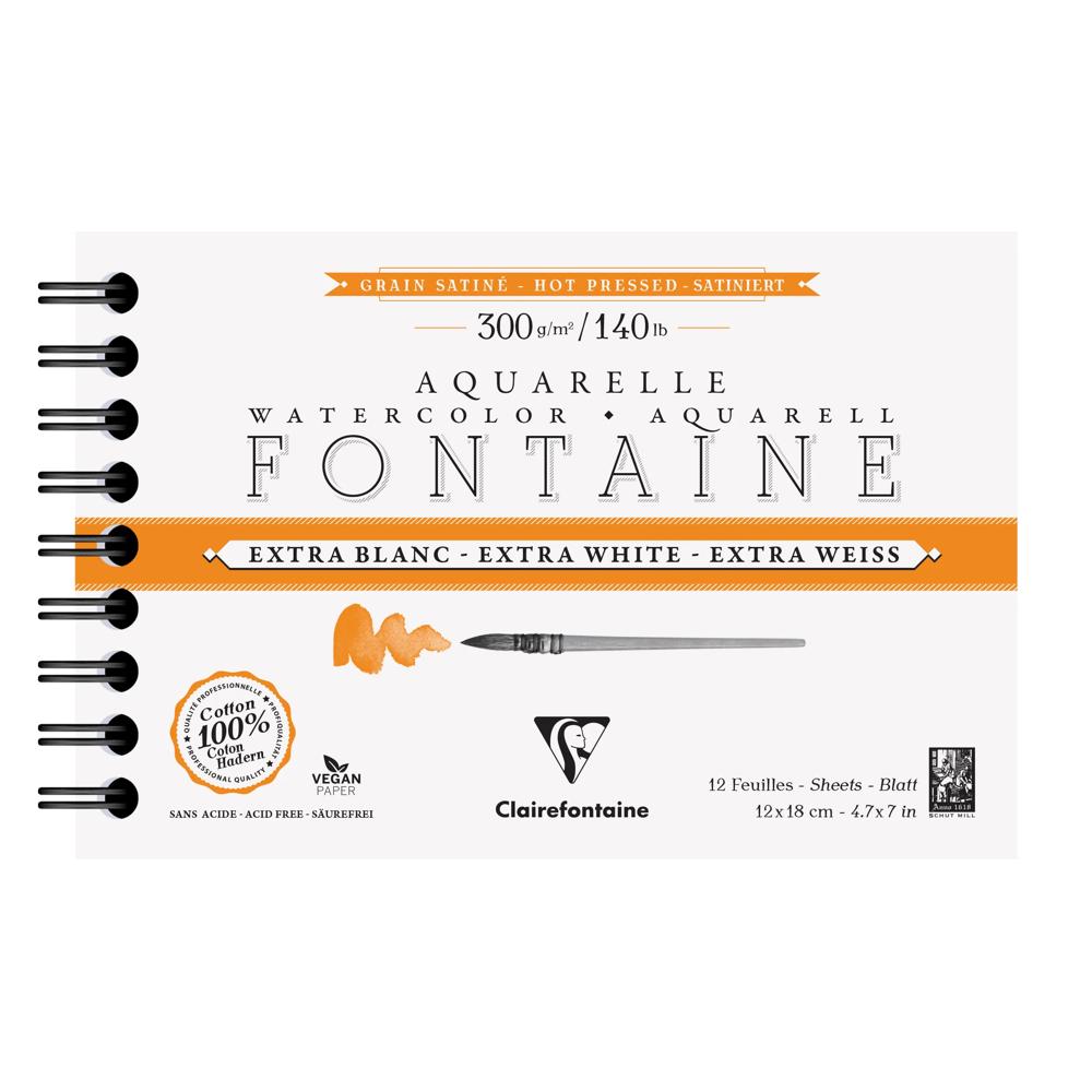 Papier aquarelle Fontaine 100% coton Extra Blanc, de qualité professionnelle. Sa composition, 100% pur coton premium et sa teinte extra blanche unique sur le marché, lui confèrent résistance, stabilité et luminosité des pigments. Son grain satiné, pressé à chaud et parfaitement lisse, est adapté aux aquarelles de précision et aux oeuvres détaillées. Son double-encollage végétal, au coeur et en surface, rend ce papier très agréable à travailler, en particulier dans l'humide et permet de préserver l'éclat et la brillance des pigments. Fabriqué dans la pure tradition des papiers d'art, ce papier est sans acide et vegan.