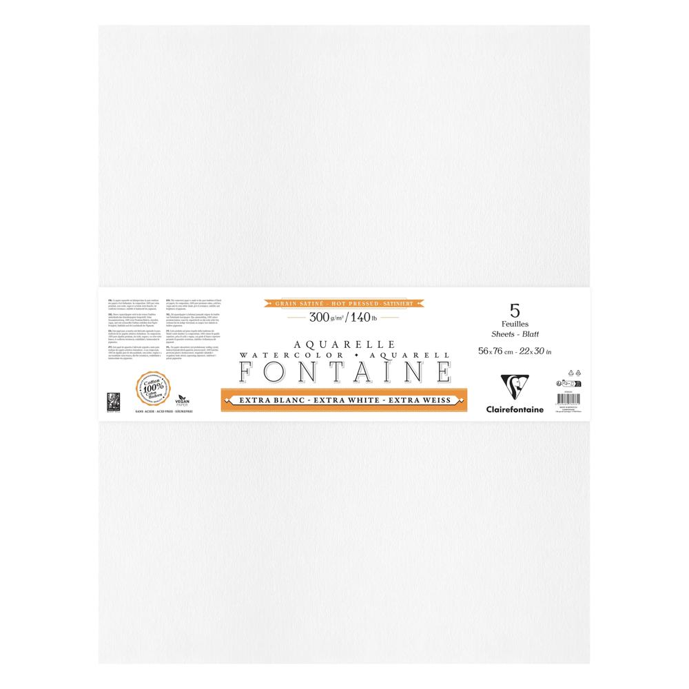 Papier aquarelle Fontaine 100% coton Extra Blanc, de qualité professionnelle. Sa composition, 100% pur coton premium et sa teinte extra blanche unique sur le marché, lui confèrent résistance, stabilité et luminosité des pigments. Son grain satiné, pressé à chaud et parfaitement lisse, est adapté aux aquarelles de précision et aux oeuvres détaillées. Son double-encollage végétal, au coeur et en surface, rend ce papier très agréable à travailler, en particulier dans l'humide et permet de préserver l'éclat et la brillance des pigments. Fabriqué dans la pure tradition des papiers d'art, ce papier est sans acide et vegan.
