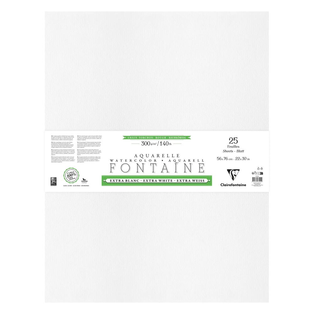 Papier aquarelle Fontaine 100% coton Extra Blanc, de qualité professionnelle. Sa composition, 100% pur coton premium et sa teinte extra blanche unique sur le marché, lui confèrent résistance, stabilité et luminosité des pigments. Son grain torchon, à la texture prononcée, est apprécié des artistes pour donner du relief et du caractère à une peinture. Son double-encollage végétal, au coeur et en surface, rend ce papier très agréable à travailler, en particulier dans l'humide et permet de préserver l'éclat et la brillance des pigments. Fabriqué dans la pure tradition des papiers d'art, ce papier est sans acide et vegan.