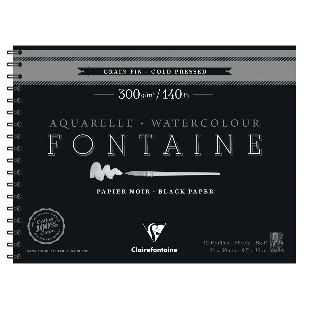 Papier aquarelle Fontaine 100% coton, de qualité professionnelle. Sa teinte noire profonde et son grain fin en font un support parfait pour donner une belle profondeur aux nuances claires, irisées et métallisées. Convient parfaitement à un mélange des techniques. Très résistant au grattage, excellence capacité d'absorption et repentir possible. Sans azurant optique, sans acide et de pH neutre.