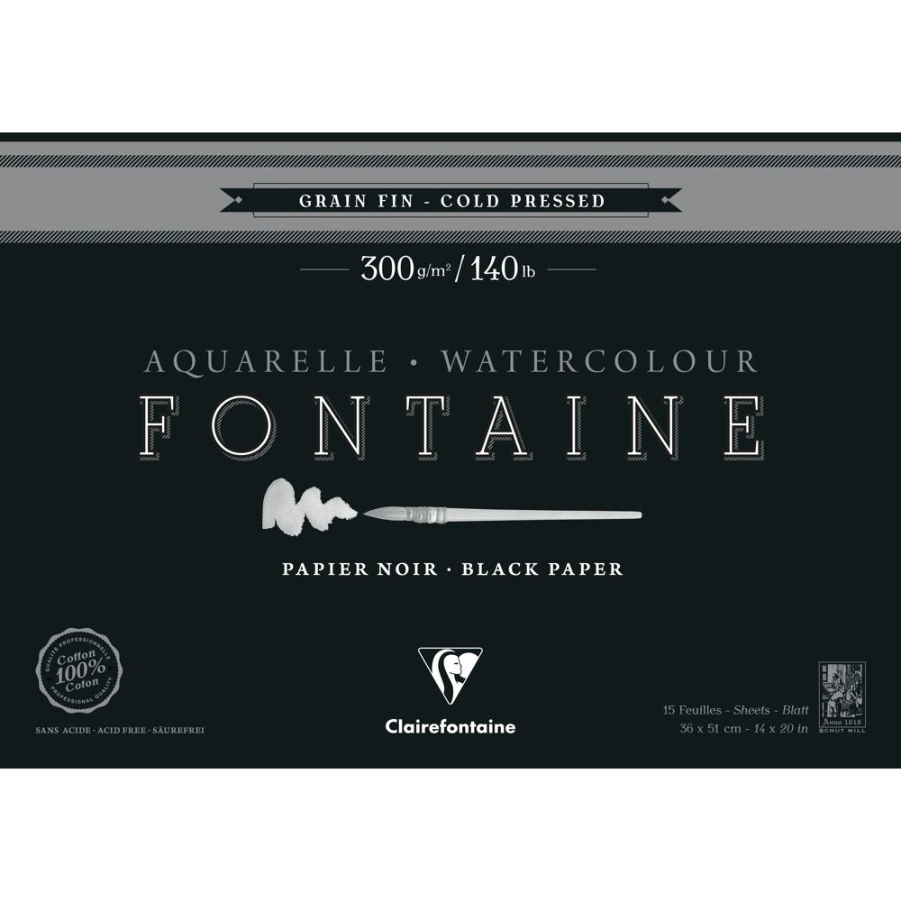 Fontaine Noir bloc collé 4 côtés 15F 36x51cm 300g grain fin