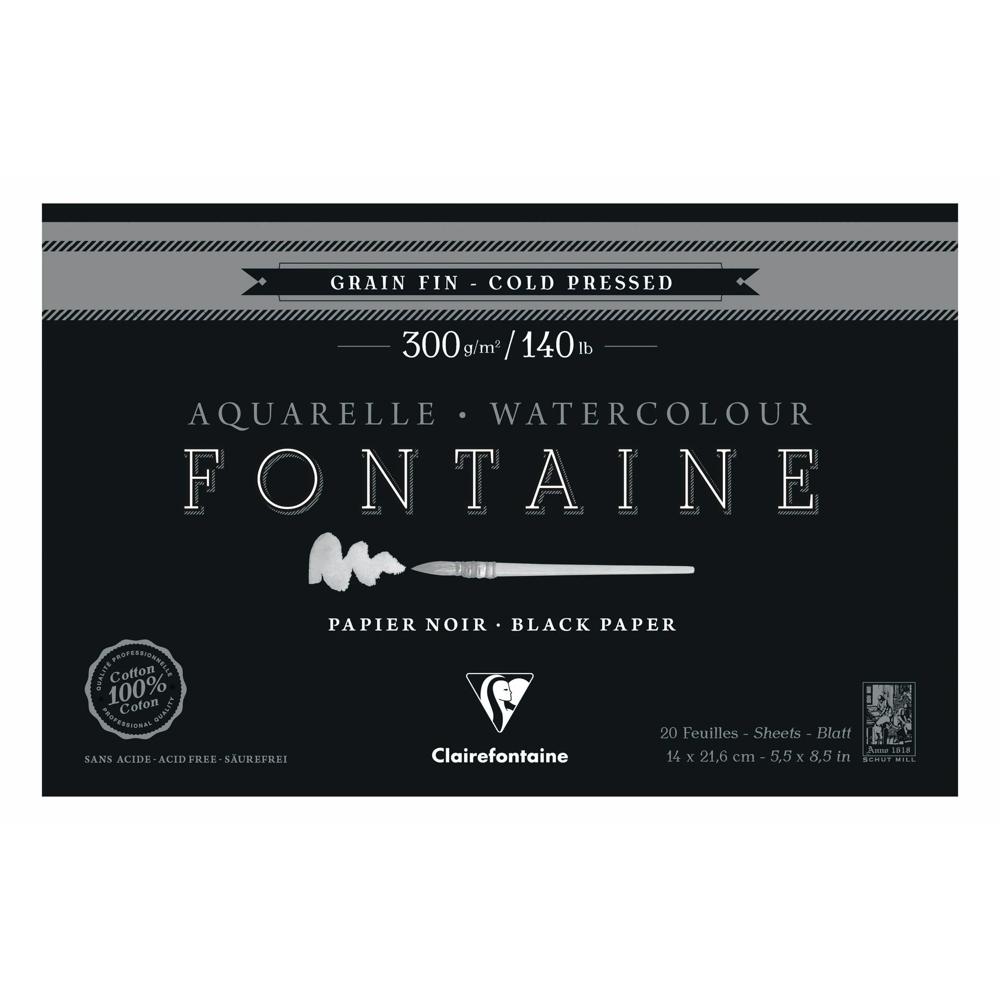Papier aquarelle Fontaine 100% coton, de qualité professionnelle. Sa teinte noire profonde et son grain fin en font un support parfait pour donner une belle profondeur aux nuances claires, irisées et métallisées. Convient parfaitement à un mélange des techniques. Très résistant au grattage, excellence capacité d'absorption et repentir possible. Sans azurant optique, sans acide et de pH neutre.