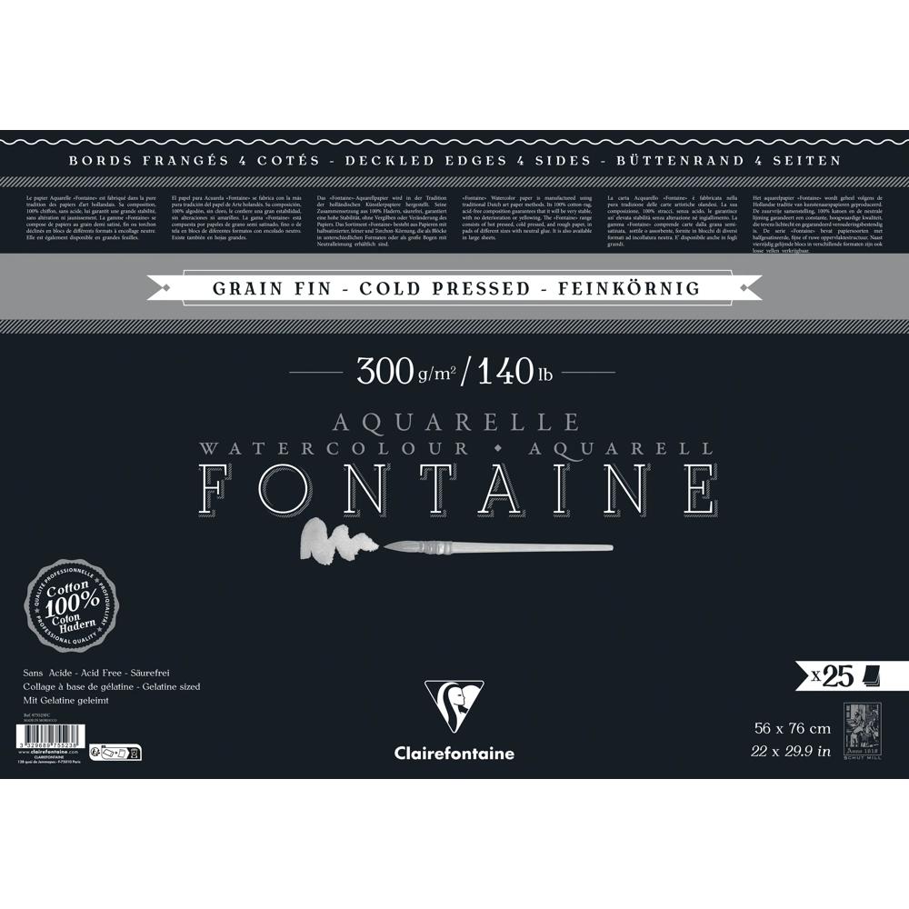 Papier aquarelle Fontaine 100% coton, de qualité professionnelle. Sa teinte noire profonde et son grain fin en font un support parfait pour donner une belle profondeur aux nuances claires, irisées et métallisées. Convient parfaitement à un mélange des techniques. Très résistant au grattage, excellence capacité d'absorption et repentir possible. Sans azurant optique, sans acide et de pH neutre.