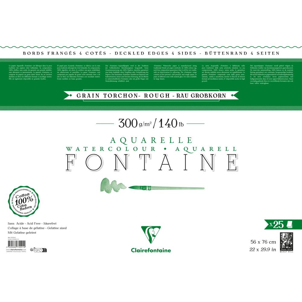 Papier aquarelle Fontaine 100% coton, de qualité professionnelle. Un grain torchon, surface accidentée idéale pour une mise en avant des reliefs. Convient parfaitement à un mélange des techniques. Très résistant au grattage, excellence capacité d'absorption et repentir possible. Sans azurant optique, sans acide et de pH neutre.