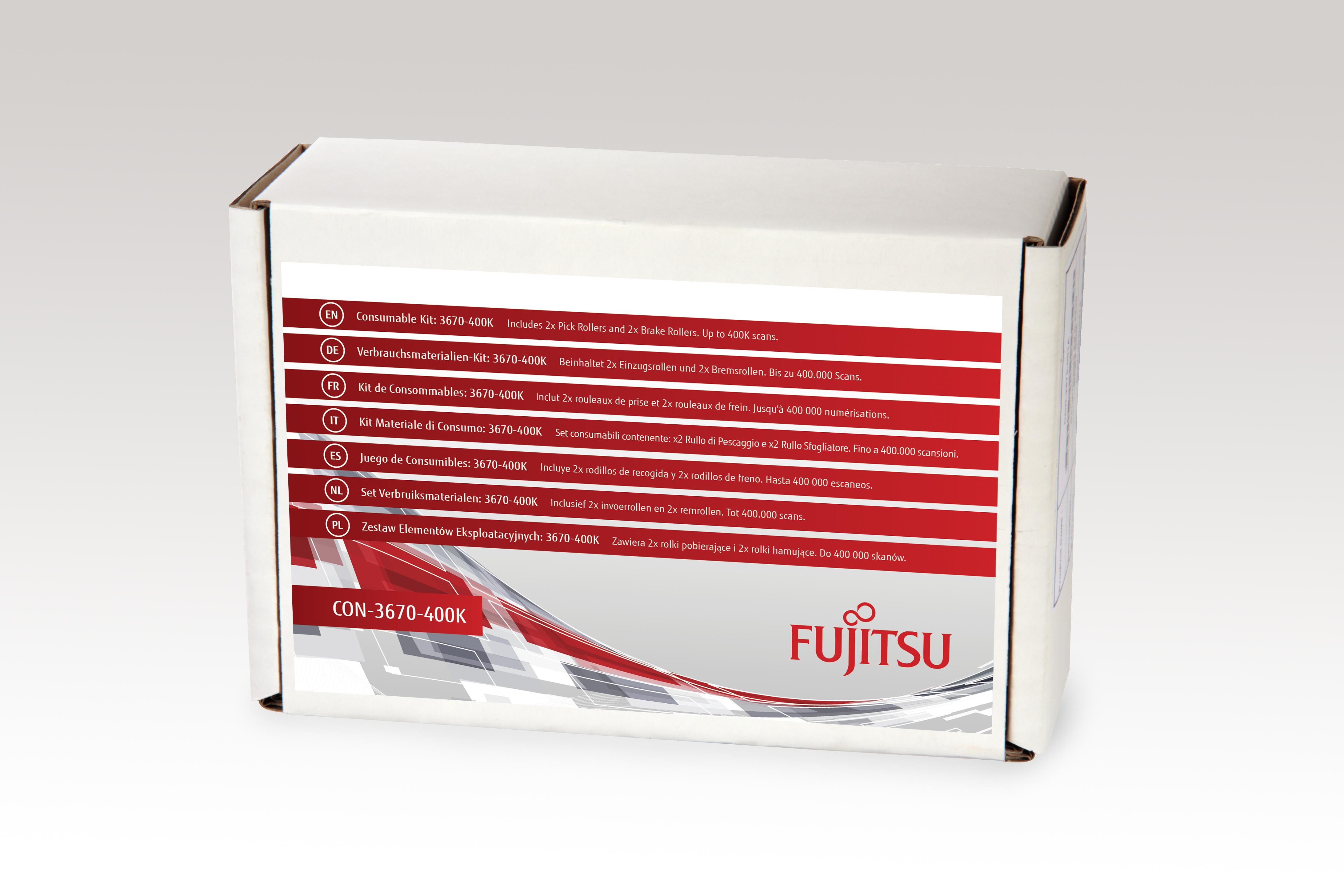 Ce kit de consommables agréé par le fabricant contient les instructions et les consommables appropriés. Vous pouvez vous le procurer auprès de votre revendeur. Le kit contient des pièces de rechange pour les éléments qui s'usent naturellement dans les conditions normales d'utilisation, comme les patins et les rouleaux. Il s'agit d'un kit de maintenance préventive indispensable qui permet d'améliorer les performances, de réduire les coûts de réparation et de conserver votre scanner en parfait état de marche.