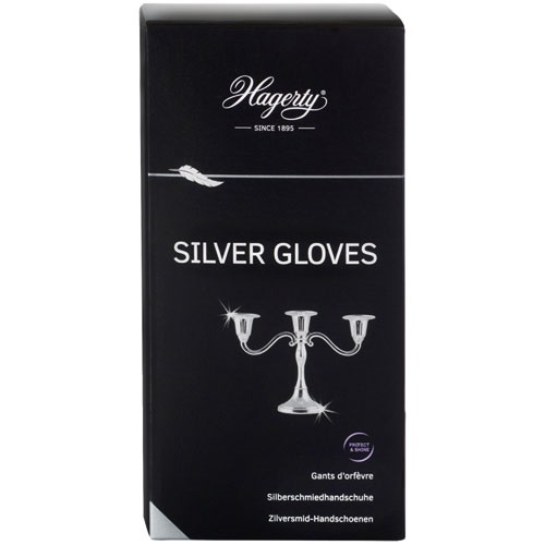 Les gants font briller les vases, cadres et autres objets ternis en argent ou métal argenté. Gants d'orfèvre, 100% coton imprégrnés de la formule exclusive Hagerty. Frottez délicatement mais minutieusement les objets avec Silver Gloves. Ne pas laver le gant. Remplacer les gants dès que la surface est complètement noire. Hagerty prend soin de vos objets précieux depuis plus de 125 ans. Nos produits vous garantissent un entretien et un nettoyage de haute qualité qui prolongera la durée de vie des objets chers à votre cœur.