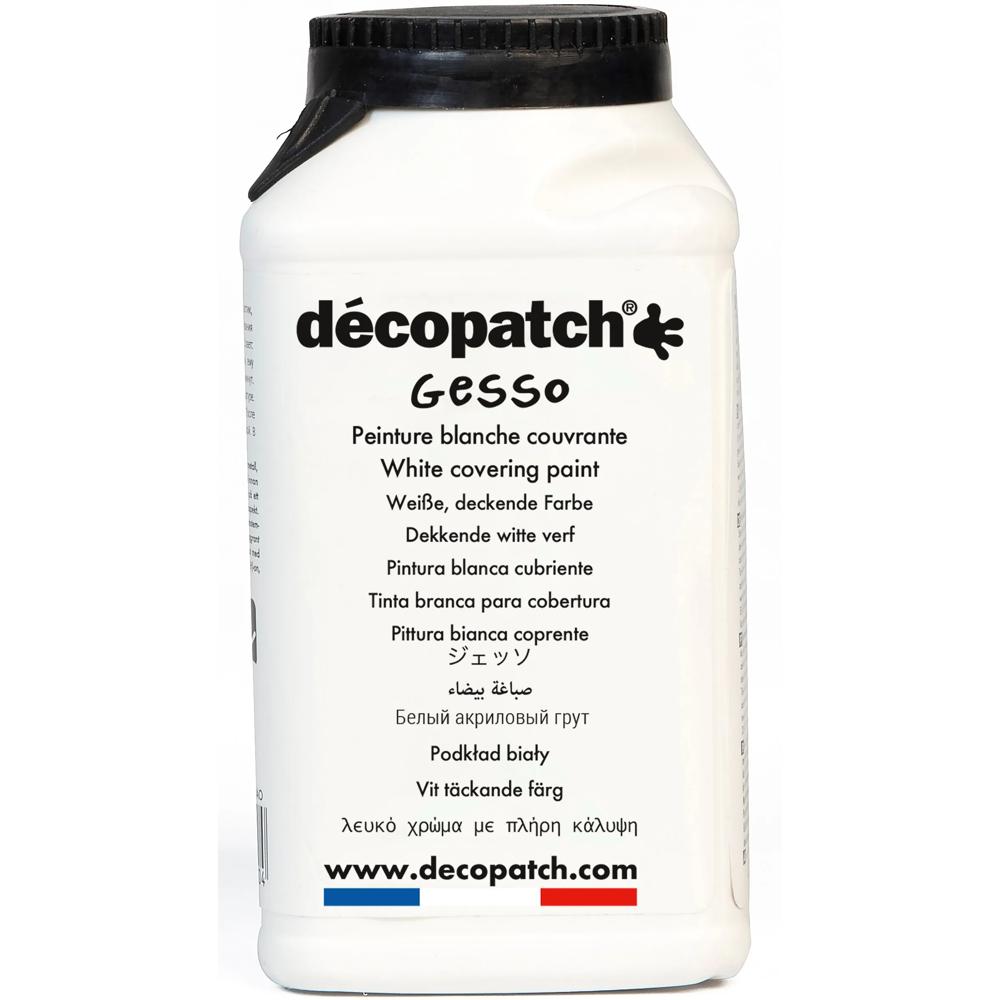 MULTI SURFACES : Le gesso Décopatch peut être utilisé sur toutes les matières (verre, métal, bois, plastique, polystyrène, céramique, terre cuite, carton, papier mâché etc.), mais également sur tout type de surfaces, planes comme irrégulières. PEINTURE : le gesso est une peinture acrylique blanche très couvrante. Idéal pour blanchir un objet foncé avant de le décorer. UTILISE EN SOUS-COUCHE : il permet de donner aux objets à décorer un aspect uniforme et blanc qui rendra les motifs du papier Décopatch (non fournis) plus éclatants. ASTUCE : appliquez une sous-couche de Gesso sur un objet déjà décoré pour lui redonner un nouveau look. CONTENANT : 300 ml de gesso. La Gesso est fabriqué en France, près de Lyon (69). Décopatch est une marque française appartenant au groupe Clairefontaine Rhodia.