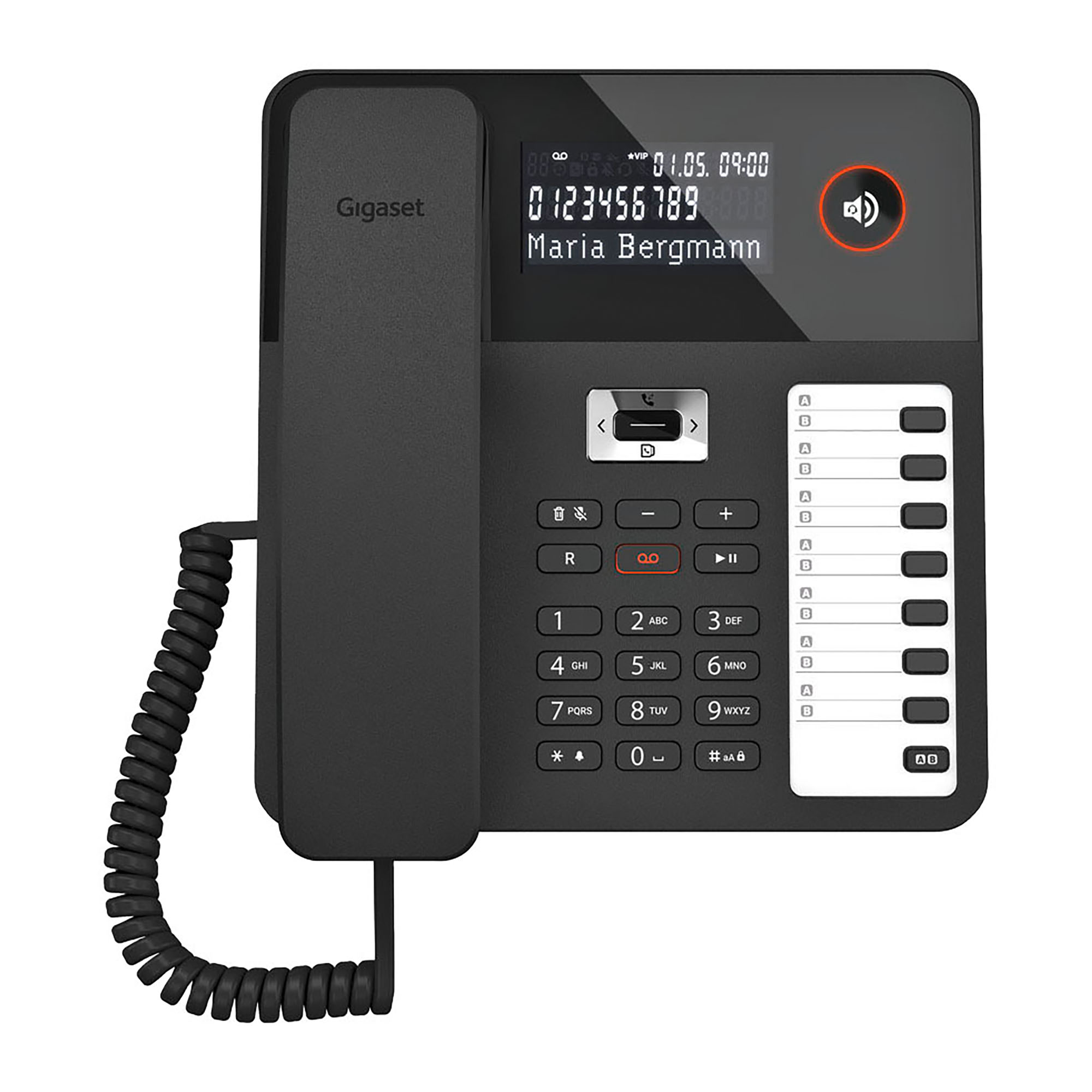 Répertoire 200 contacts avec fonction VIP et sonneries personnalisées.