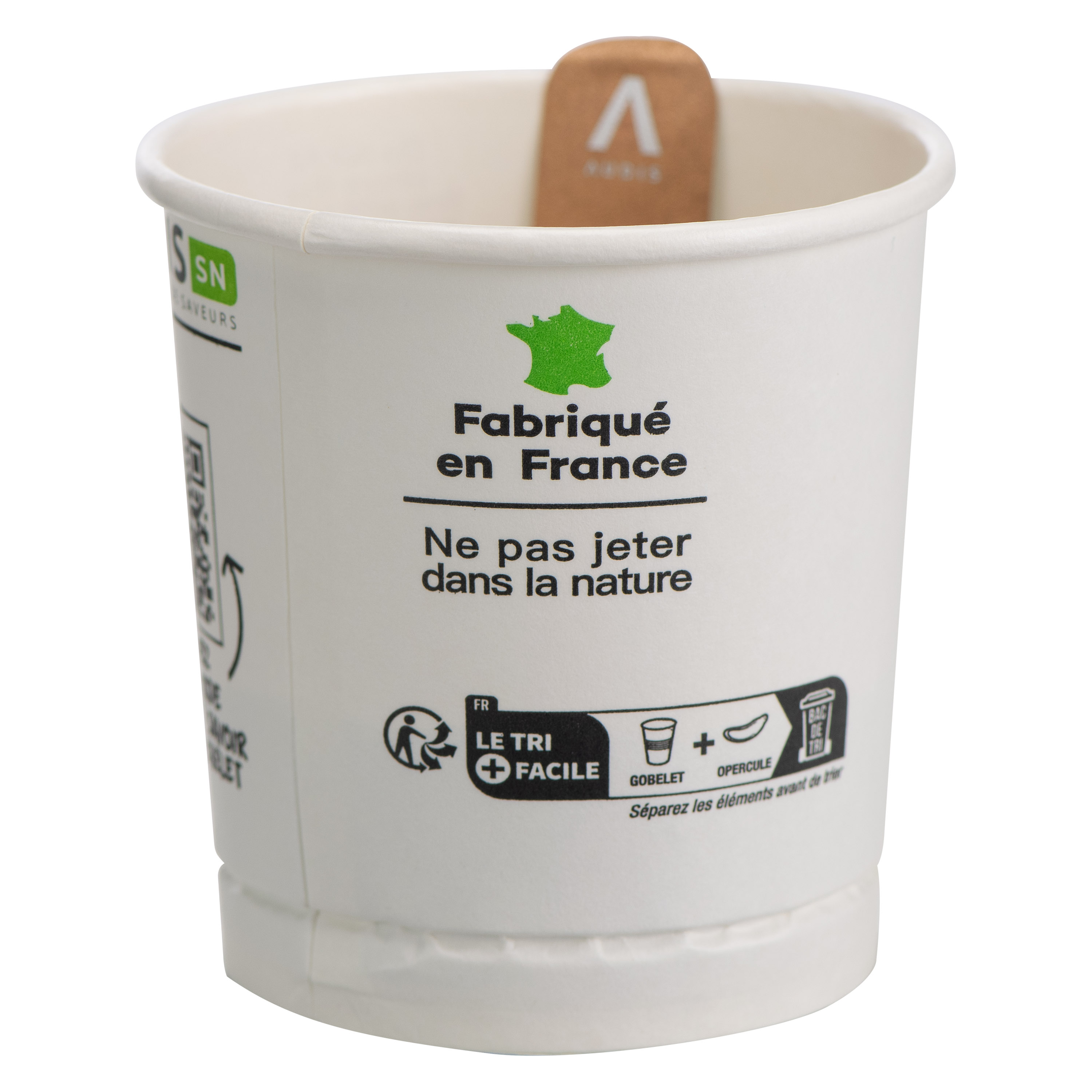 Gobelet en carton operculé pré dosé 100% recyclable.