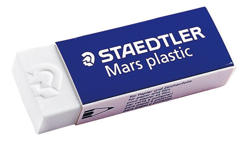 Une gomme plastique blanche pour papier et calque.