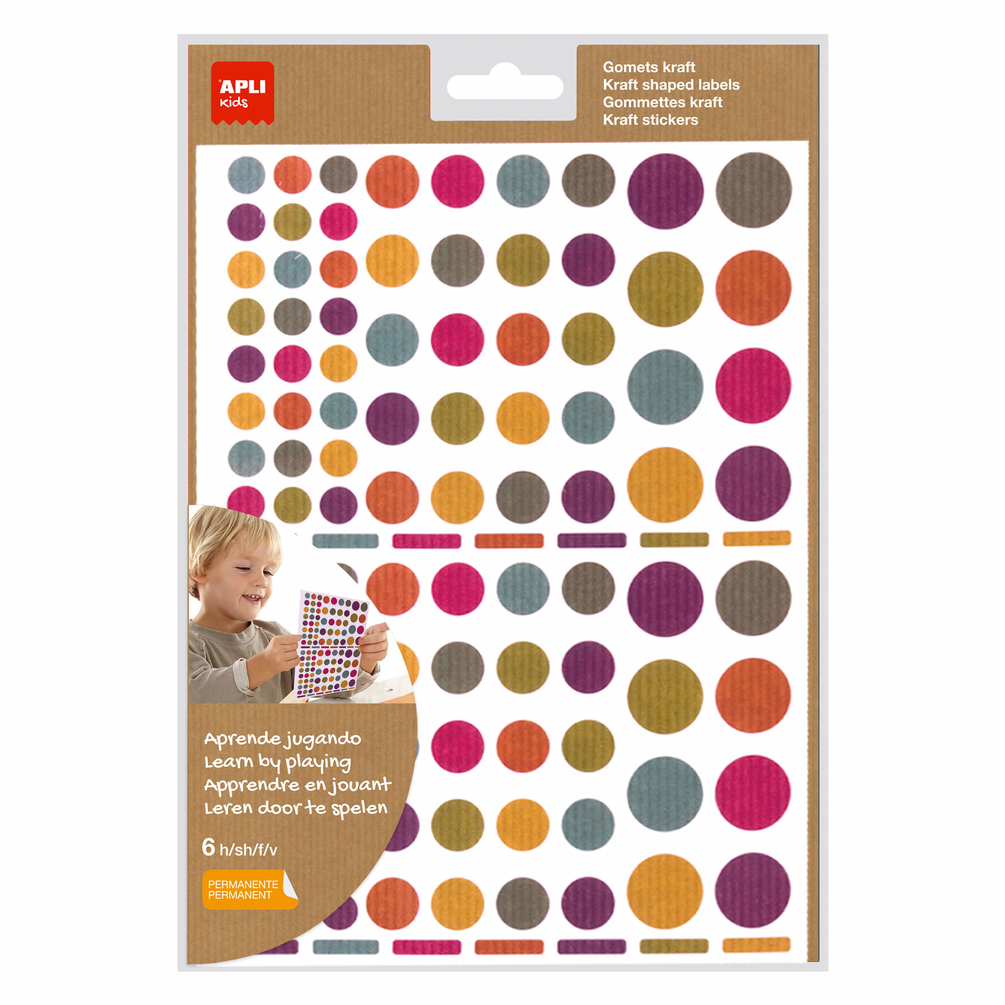 Découvrez les gommettes APLI en papier kraft, un choix parfait pour vos projets créatifs et éducatifs. Avec 624 gommettes rondes dans un assortiment de couleurs et de tailles, ce produit est idéal pour les activités artistiques et l'apprentissage. Ces gommettes sont fabriquées à partir de papier kraft, connu pour sa résistance et son respect de l'environnement, et sont parfaites pour ajouter une touche de couleur et d'organisation à vos travaux.