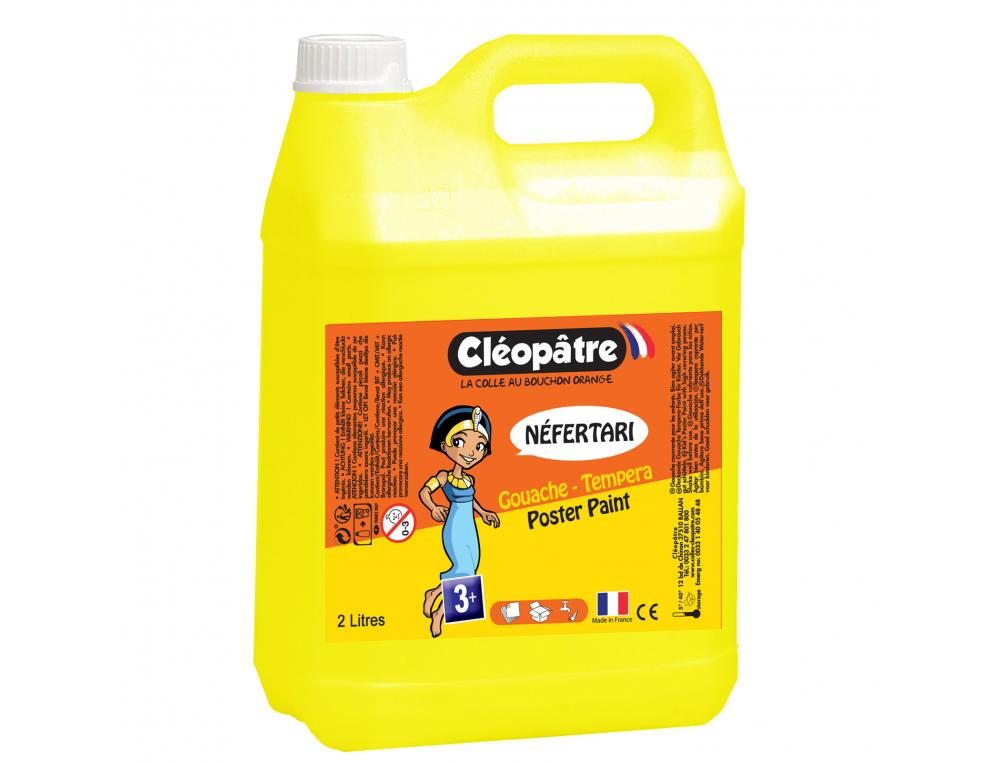 La gouache liquide Cléopâtre Nefertari, coloris jaune, est idéale pour les activités artistiques et éducatives. Conçue pour être couvrante et facilement lavable à l'eau savonneuse, elle convient parfaitement aux enfants dès leur plus jeune âge. Le flacon contient 2 litres de peinture, ce qui en fait une option pratique pour les projets de grande envergure. Afin de garantir la sécurité des plus jeunes, la peinture contient un agent d'amertume pour éviter toute ingestion.