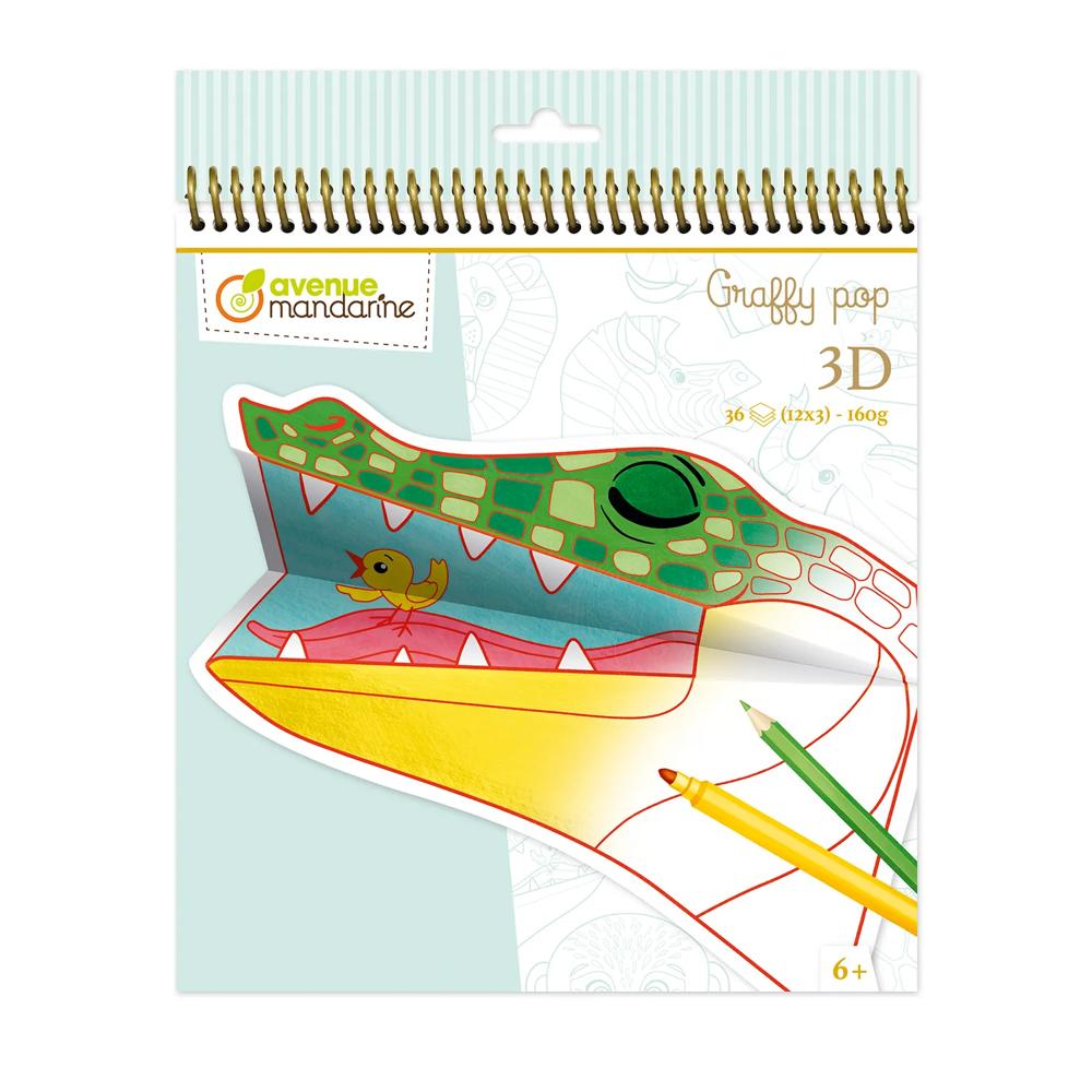 Découvrez les Graffy 3D !Ce carnet permettra de réaliser de jolies têtes d'animaux en volume à encadrer ou à échanger. Papier dessin 160g, formes prédécoupées, 12 dessins répétés 3 fois soit 36 feuilles. Certifié PEFC. Conforme aux normes CE.
