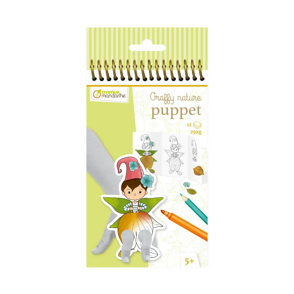 Explorer la nature, colorier et jouer !Petit carnet de 12 feuilles à 3 volets : un modèle en couleur, une marionnette à doigts pré-découpée à colorier et un personnage à compléter de feuilles d'arbres ou de fleurs et à colorier et découper. 12 feuilles 3 volets sur papier dessin 250g