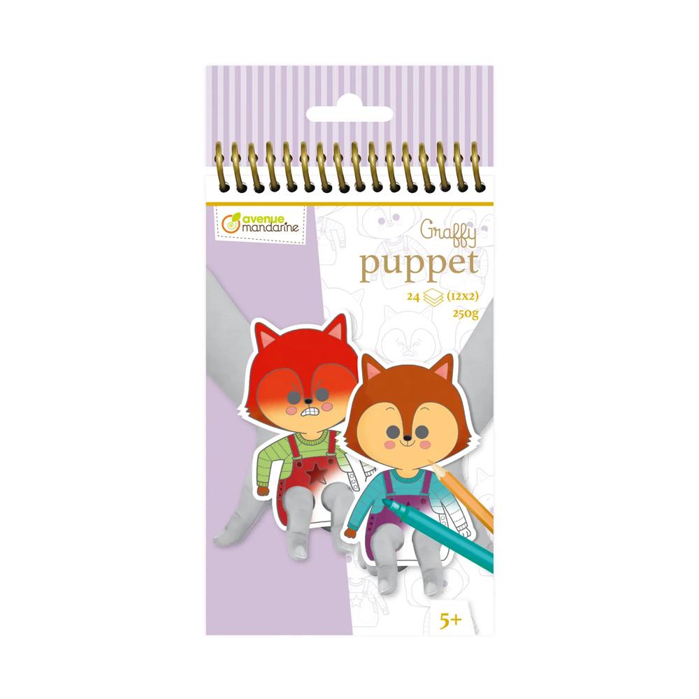 Petit carnet de 24 marionnettes à doigts pré-découpées à colorier.