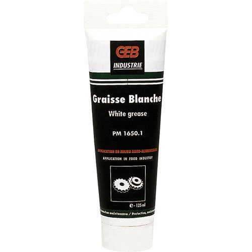 Graisse blanche GEB pour lubrifier tous les matériaux qui pourraient se trouver en contact avec les aliments : hachoir à viande, petit électroménager Quantité : 125 mL. Sans goût ni odeur. Ne jaunit pas.