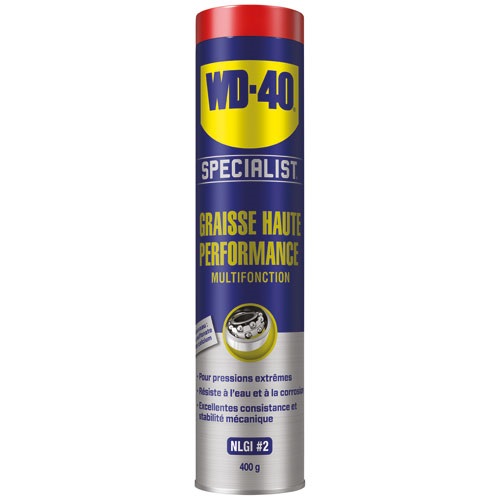 La graisse haute performance cartouche de 400 g de la marque WD40 SPECIALIST. Résistante aux fortes charges, idéal en environnement humide et fortes chaleurs. Exceptionnelle stabilité mécanique, elle lubrifie sans modification significative de sa consistance et une excellente protection contre la corrosion.Graisse premium de dernière génération. Performante et polyvalente, sa formule épaissie au Sulfonate de Calcium la rend idéale pour les travaux les plus exigeants.