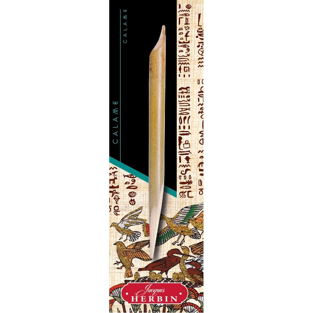 Calame en bambou de 18 cm de longueur, grand diamètre, taillé deux côté (un côté plus large) Le calame est utilisé aujourd'hui pour de la calligraphie arabe, l'écriture ou le dessin. Grande réserve d'encre. Un beau moyen d'écrire sur du Papyrus (référence 91000T) comme les scribes égyptiens sous l'Antiquité.