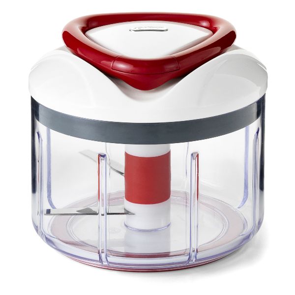 Hachoir manuel - Easy Pull - Une conception brevetée pour hacher vos aliments en toute facilité ! - Diamètre 14 cm - Capacité 75 cl - Hachoir manuel polyvalent pour mélanger, hacher et réduire en purée vos ingrédients - Vous pourrez également y préparer vos sauces, guacamoles, chapelure, smoothies, etc .. - Tirez tout simplement sur la poignée antidérapante et les lames s'actionnent - Bol avec base anti-dérapante pour une grande stabilité - Design suisse breveté - Nettoyage facile : le bol et les lames passent au lave-vaisselle - Le couvercle doit être lavé à la main - Garantie 5 ans.