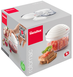Hachoir manuel multi-usages - Rotomac - Simple, rapide et efficace ! - Facile à utiliser : quelques tractions sur la poignée suffisent pour hacher vos herbes, légumes ou autres aliments - Mécanisme à corde permettant une coupe efficace et sans efforts - Plus vous actionnez la corde, plus l'aliment est haché finement ! - Bol plastique 0.5 L - 3 lames inox ultra-tranchantes avec protection de rangement - Corde en nylon - Base anti-dérapante pour une bonne stabilité - Dimensions 14 x 11 cm - Nettoyage facile : passe au lave-vaisselle.