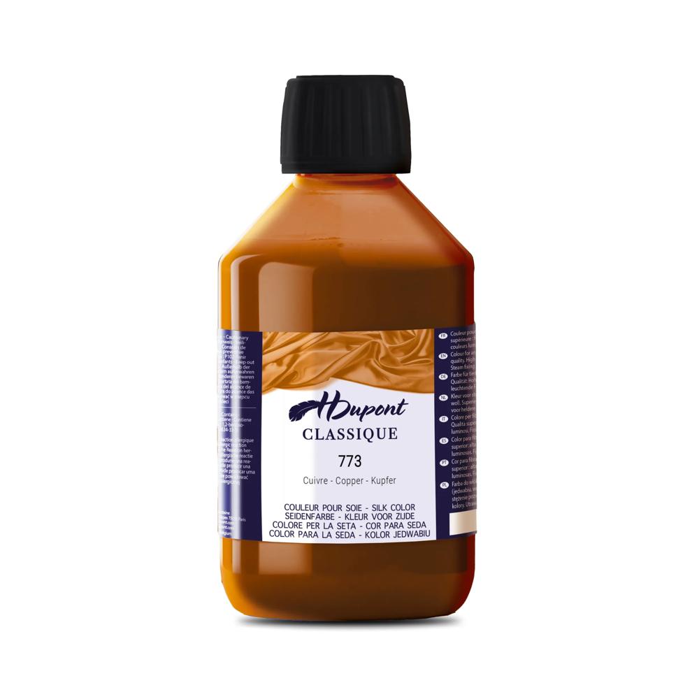 PEINTURE SUR SOIE : H Dupont est une marque de peinture sur soie. Composée de 85 couleurs brillantes et déclinée en 3 formats (125ml, 250ml, 1000ml). Les peintures sont miscibles entre elles pour permettre des possibilités de déclinaisons infinies. FIXATION VAPEUR : nécessite une fixation à l'étuve (procédé de fixation à la vapeur). La vapeur permet à la peinture de pénétrer à l'intérieur des fibres de la soie. Après fixation, la soie peut être lavée sans crainte de détérioration des couleurs. FIBRES ANIMALES : Les peintures H Dupont sont utilisées sur les fibres animales (soie, laine.). Les peintures sont lumineuses et d'une qualité supérieure. Principalement utilisées sur la soie, elles permettent de créer des réalisations uniques ! QUALITÉ SUPÉRIEURE : Couleurs à base de colorants acides. La forte concentration permet d'utiliser les couleurs pures ou diluées. Elles peuvent être utilisées en peinture ou teinture et ne laissent aucune porosité sur la soie après fixation. PREMIUM : H Dupont est une marque haut de gamme de peintures et auxiliaires pour soie. Utilisée par de nombreux professionnels de la soie. Découvrez l'entiereté de la gamme et initiez vous à la pratique créative et apaisante de la peinture sur soie.