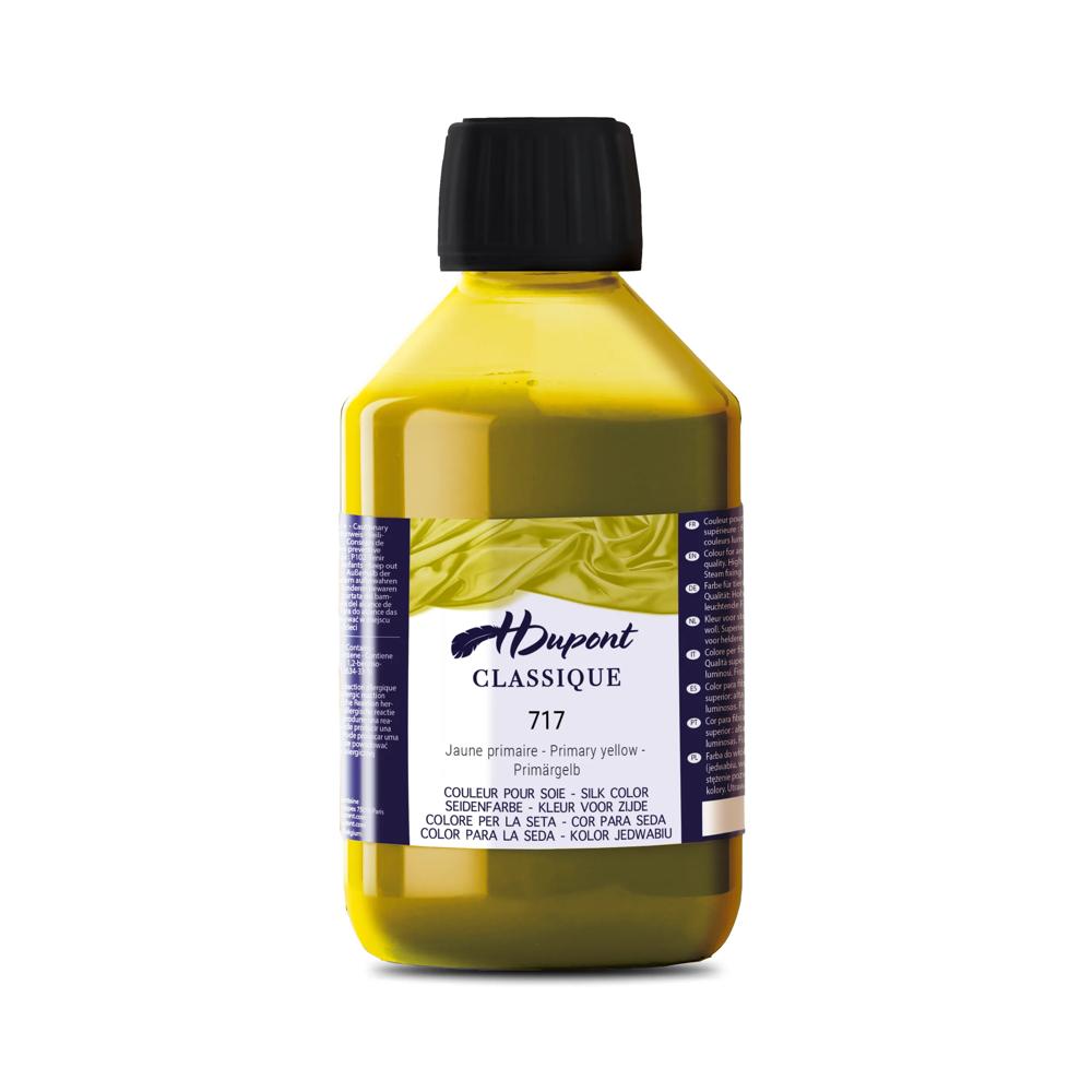 PEINTURE SUR SOIE : H Dupont est une marque de peinture sur soie. Composée de 85 couleurs brillantes et déclinée en 3 formats (125ml, 250ml, 1000ml). Les peintures sont miscibles entre elles pour permettre des possibilités de déclinaisons infinies. FIXATION VAPEUR : nécessite une fixation à l'étuve (procédé de fixation à la vapeur). La vapeur permet à la peinture de pénétrer à l'intérieur des fibres de la soie. Après fixation, la soie peut être lavée sans crainte de détérioration des couleurs. FIBRES ANIMALES : Les peintures H Dupont sont utilisées sur les fibres animales (soie, laine.). Les peintures sont lumineuses et d'une qualité supérieure. Principalement utilisées sur la soie, elles permettent de créer des réalisations uniques ! QUALITÉ SUPÉRIEURE : Couleurs à base de colorants acides. La forte concentration permet d'utiliser les couleurs pures ou diluées. Elles peuvent être utilisées en peinture ou teinture et ne laissent aucune porosité sur la soie après fixation. PREMIUM : H Dupont est une marque haut de gamme de peintures et auxiliaires pour soie. Utilisée par de nombreux professionnels de la soie. Découvrez l'entiereté de la gamme et initiez vous à la pratique créative et apaisante de la peinture sur soie.