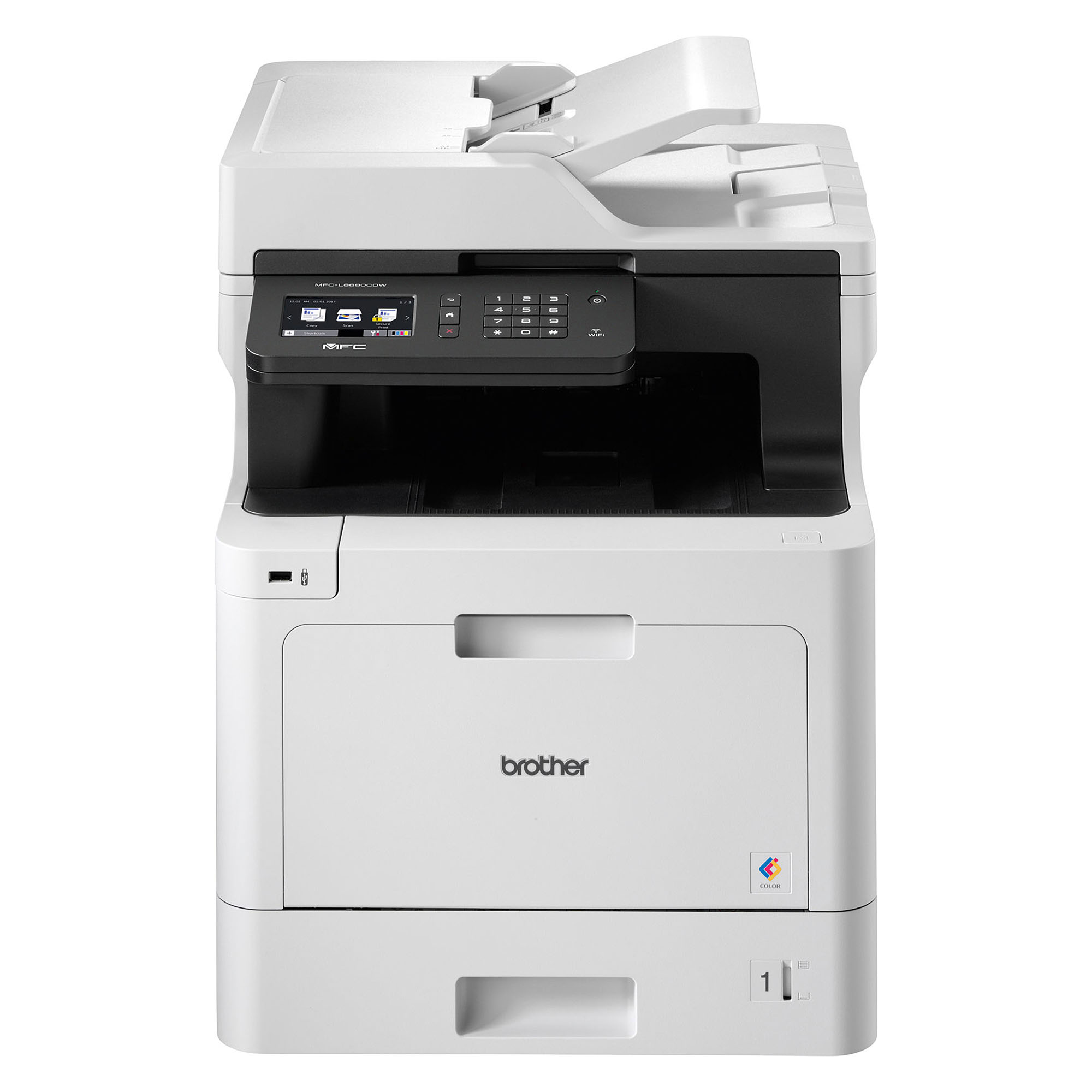 Imprimante multifonction laser couleur 4 en 1 (impression, numérisation, photocopie, télécopie).