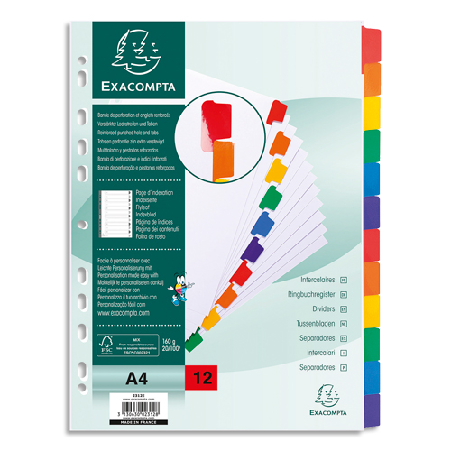 Description détailléePage d'indexation renforcée et imprimable gratuitement avec Kreaman® sur www.exacompta.com Perforations et touches multicolores renforcées.