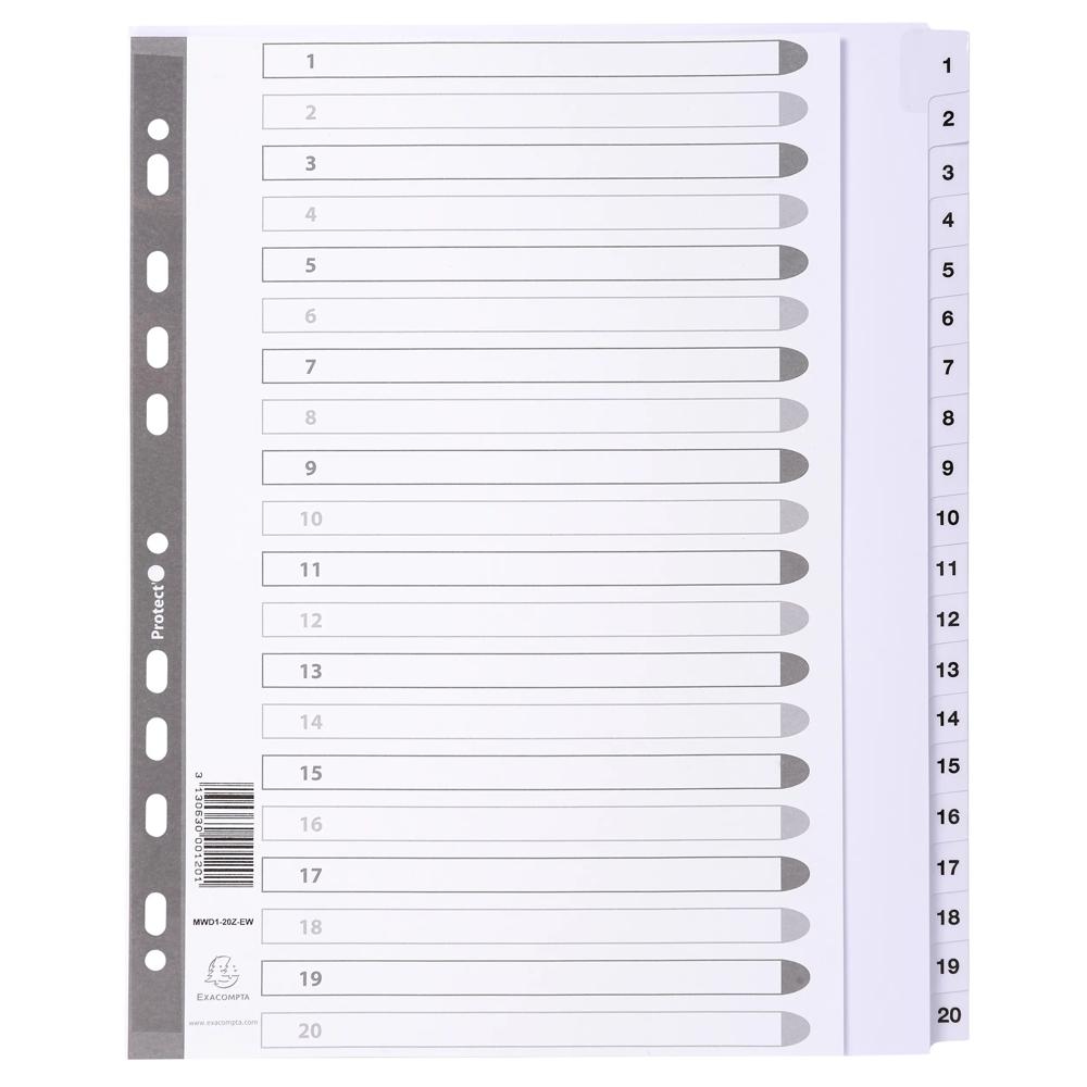 Onglets imprimés recto verso pour une navigation plus rapide entre les différentes sections. Page d'indexation renforcée et imprimable gratuitement avec Kreaman® sur www.exacompta.com Perforations et touches blanches renforcées.