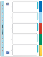 onglets en 5 couleurs: bleu, bleu clair, rouge, vert, jaune