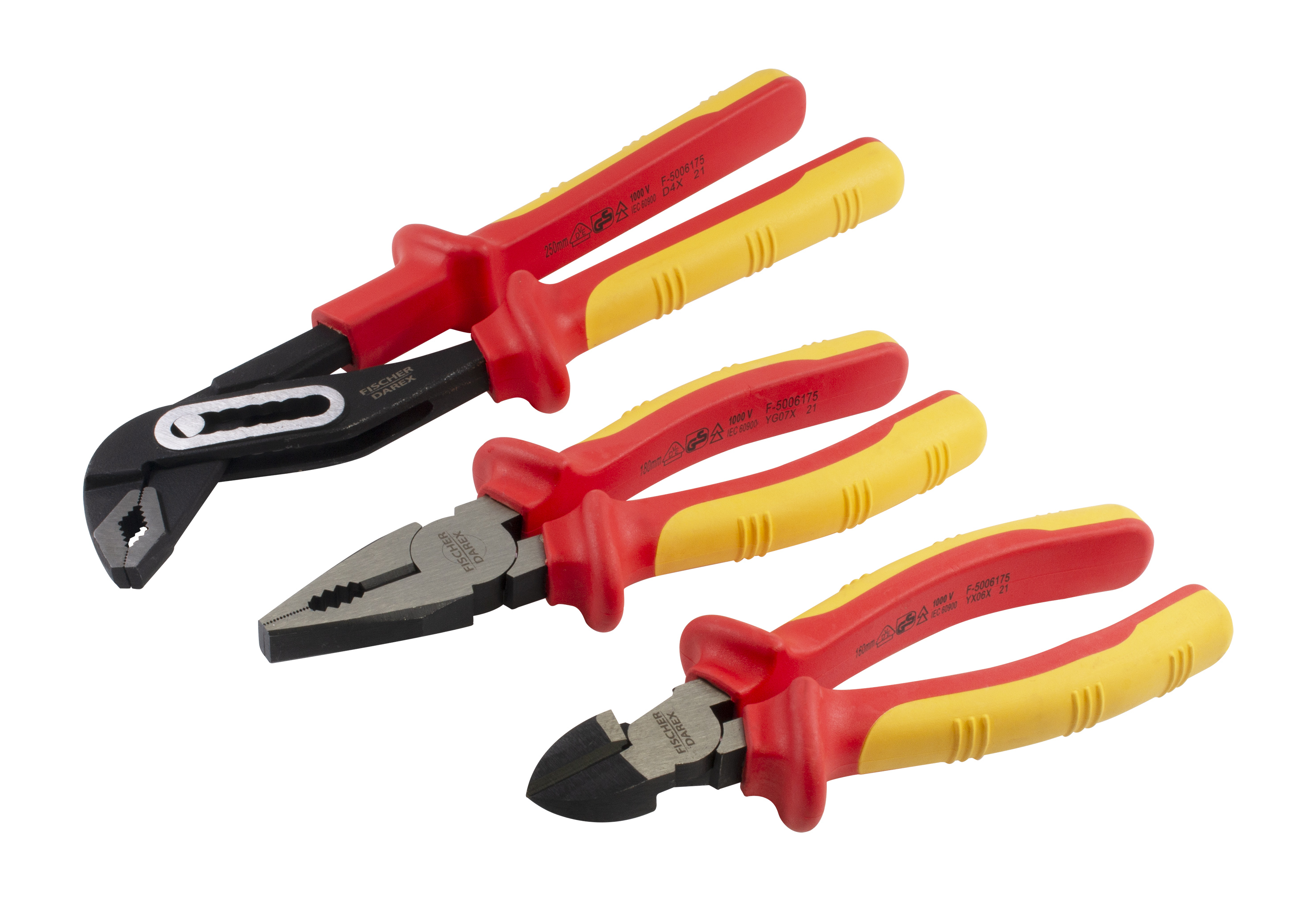 Jeu de 3 pinces isolées VDE 1000V – Idéal pour les travaux sous tension en toute sécurité.