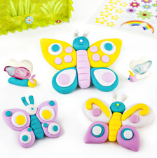 jaune, rose, turquoise & blanc pailleté, outil de modelage,