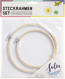 Description détailléeKit composé de : 2 tambours à broderie en bois classiques, diamètre 150 et 200 mm, 1 morceau de toile Aïda 250 x 490 mm blanc, cadre avec vis de réglage pratique
