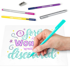 Description détailléePour la création de motifs calligraphiques expressifs, contenu: 2 feutres fins, 4 feutres, 2 surligneurs, 1 marqueur métallisé, 1 crayon de papier 100-HB, 1 gomme, 1 taille-crayon & instructions