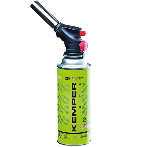 Le kit lampe à souder piézo à baïonnette, cartouche de gaz butane de 227 g de chez Kemper est une lampe à souder multi-usages. Idéal pour la brasure du cuivre et de l'étain. Vous pourrez l'utiliser pour chauffer, dégeler, allumer un feu, application possible en cuisine. Facile à utiliser grâce à son allumage piézo, le système de préchauffage permettant le fonctionnement en toute position. Autonomie moyenne de 6 heures. L'appareil est compatible avec toutes les cartcouhes à baïonnette standard.