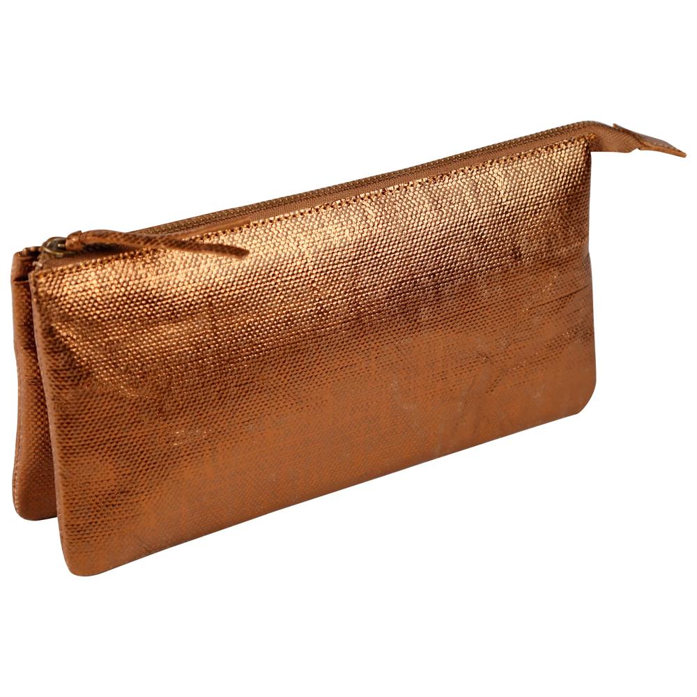 KLEO-PATHRA CUIR Grande Pochette 2 compartiments 22x11 cm Bronze