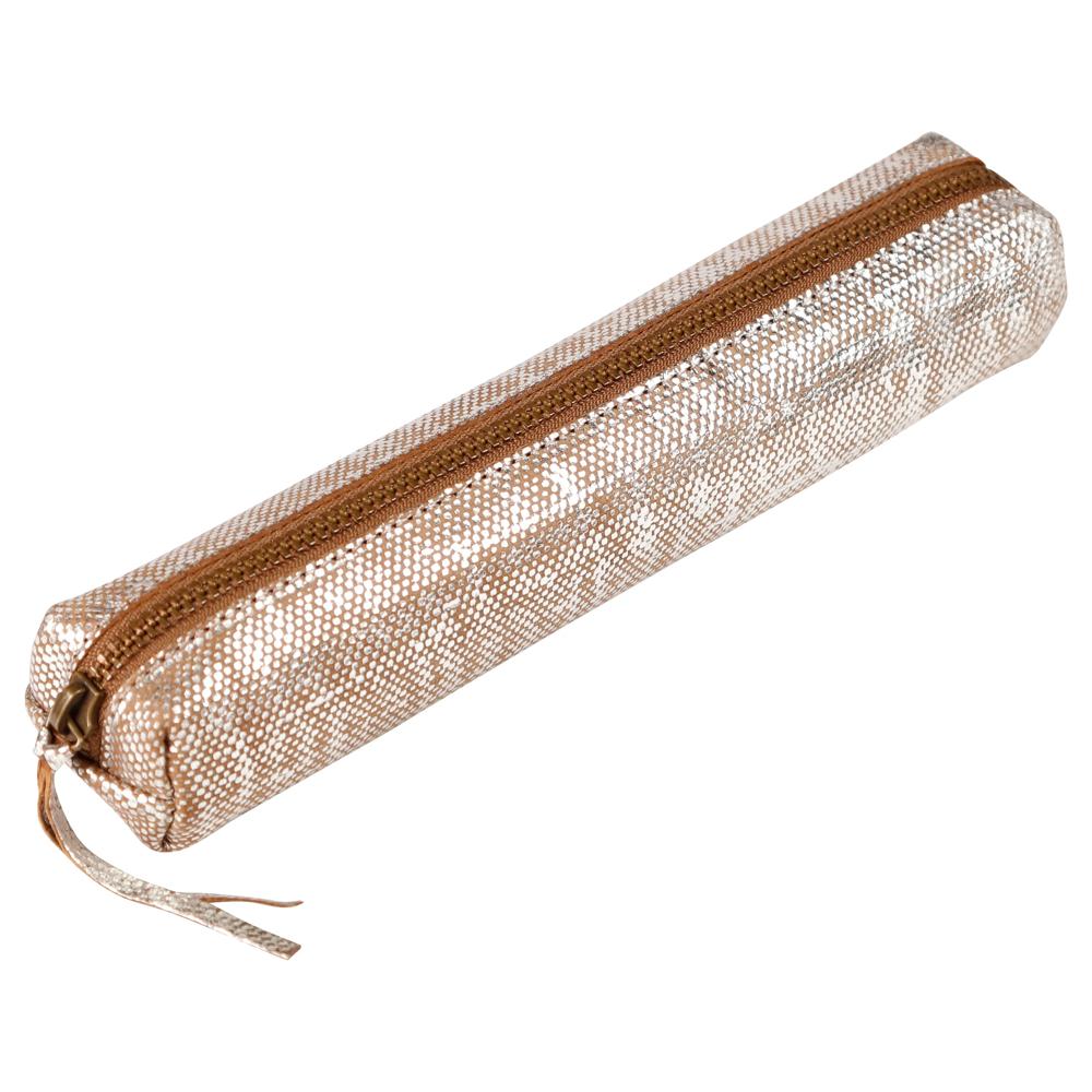 En véritable cuir d'agneau, souple et agréable au toucher. Le tannage est végétal aux extraits entre autres de mimosa et quebracho et sans chrome ni arsenic afin de préserver l'environnement ainsi que les opérateurs sur place. Le format SLIM est idéal pour y ranger quelques crayons ou stylos, de plus de par sa petite taille cette trousse rentre dans n'importe quel sac. Aspect original du cuir avec un fini irisé. Plus qu'une simple trousse, c'est un accessoire de mode. Notre gamme de maroquinerie propose des produits hautement qualitatifs et tendances. Nos produits en cuir sont pensés, fabriqués et testés avec la même exigence que nos produits de papeterie. Nous mettons tout notre savoir-faire au service de vos besoins.