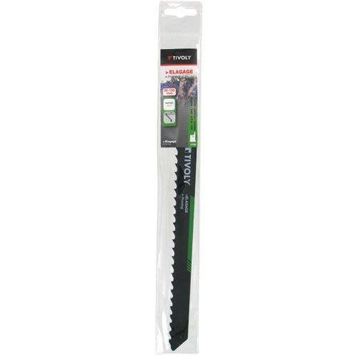 La Lame de scie sabre Essential spécial élagage attache universelle longueur 230 millimètres longueur de coupe 210 millimètres lot de 2 de chez Tivoly est en cier au chrome vanadium fortement allié est utilisé pour le travail sur des matériaux plus tendres tels que le bois, les panneaux de fibres et les matériaux synthétiques. Propriétés et bénéfices : l’ondulation fraisée maintient une surface de contact entre la lame et le matériau. Evite les à-coups et permet des coupes trés propres dans le contreplaqué, l'aluminium, les métaux non-ferreux et matiéres plastiques. Lame en acier carbone HCS : acier à haute teneur en carbone idéal pour la découpe dans le bois tendre et les matériaux de menuiserie non abrasifs. Permet une plus grande durée de vie grâce à la flexibilité de la lame.