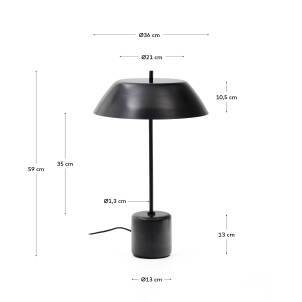 Sayra s'inspire de la simplicité du métal avec une finition noire, qui contraste avec un design contemporain. La manière parfaite d'illuminer vos pièces.- Lampe de table avec base en marbre noir et abat-jour en métal noir.