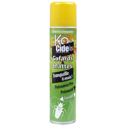 La laque anti-cafards et blattes en 300 mL de chez KO-cide à un effet longue durée tranquille 6 mois. C'est une laque pour un traitement préventif et curatif, de par son effet choc important, tue instantanément celles qui ont été aspergées par le produit. La haute rémanence de cette laque permet de traiter les zones de passage et les cachettes où se reproduisent les cafards et les blattes, et d’obtenir leur destruction dans le temps. Bien agiter l’aérosol avant utilisation. Usage intérieur. Pulvérisez en bandes dites de barrage de 20 à 30 cm le long des plinthes et tuyauteries. Traiter également toutes les cachettes : fissures, orifices d’aération, vide-ordures, dessous de baignoires, d’évier, dos de radiateurs et d’appareils électro-ménagers (laves-vaiselle, réfrigérateur...). Traitement préventif et curatif. Foudroyant, persistant 6 mois environ selon les supports. Ne tache pas, inodore après application.
