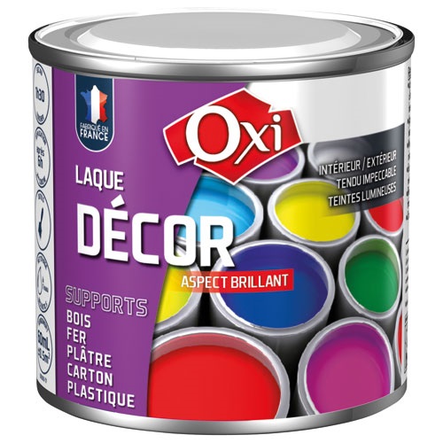 La laque décor aspect brillant de 60 mL en coloris blanc de la marque OXI est multi-supports. Elle permet de décorer et retoucher tous les objets, meubles, bibelots et menuiseries. Elle s'applique en intérieur et en extérieur sur le fer, bois, plâtre, cartons, plastiques et elle offre un fort pouvoir couvrant ainsi qu'une excellente résistance aux chocs et aux rayures. Pour 8 à 10 m²/L. Peinture prête à l'emploi. A appliquer au pinceau en une ou deux couches en fonction du support. Séchage en 1h 30 et recouvrable en 6h. Nettoyage des outils à l'eau. Sans odeur. Certification Norme Jouet EN 71.3. Composition : à base de résines alkydes et acryliques.