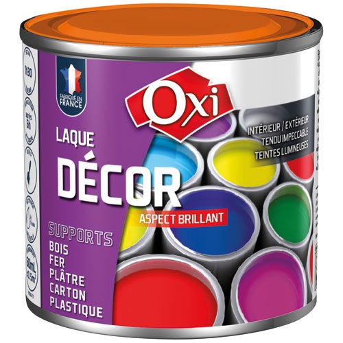 La laque décor aspect brillant de 60 mL en coloris clémentine de la marque OXI est multi-supports. Elle permet de décorer et retoucher tous les objets, meubles, bibelots et menuiseries. Elle s'applique en intérieur et en extérieur sur le fer, bois, plâtre, cartons, plastiques et elle offre un fort pouvoir couvrant ainsi qu'une excellente résistance aux chocs et aux rayures. Pour 8 à 10 m²/L. Peinture prête à l'emploi. A appliquer au pinceau en une ou deux couches en fonction du support. Séchage en 1h 30 et recouvrable en 6h. Nettoyage des outils à l'eau. Sans odeur. Certification Norme Jouet EN 71.3. Composition : à base de résines alkydes et acryliques.