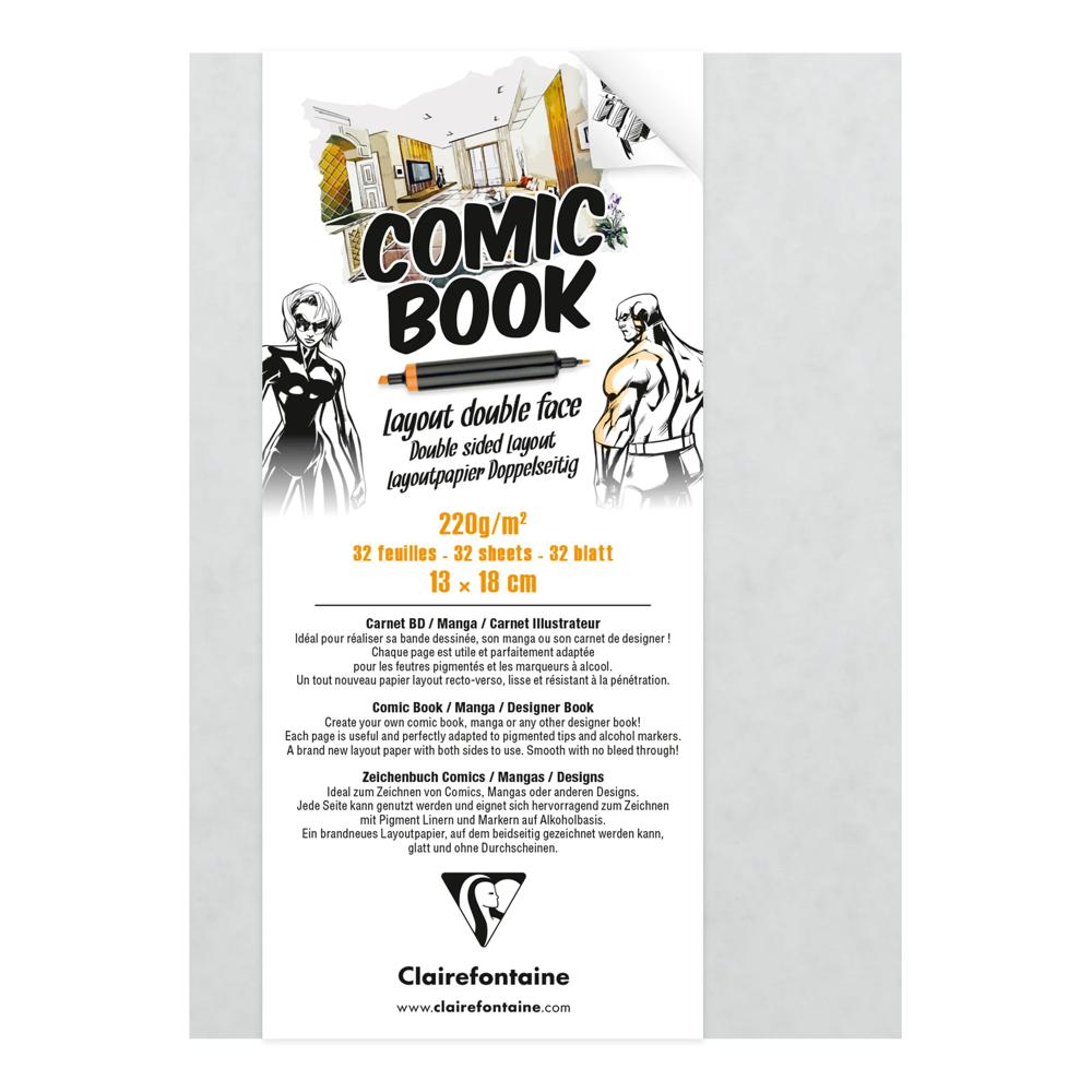 Papier Layout double face avec une barrière antipénétration des encres. Papier 220g épais extra lisse et doté d'une belle opacité permettant l'utilisation des deux côtés de la feuille. Dédié aux feutres à alcool, à l'encre de Chine et au line-art. Permet les effets d'ombre par superposition des tracés sans que l'encre ne fuse. Couverture en carte lustro grise entièrement personnalisable pour la création intégrale d'un carnet de BD, manga ou designer.