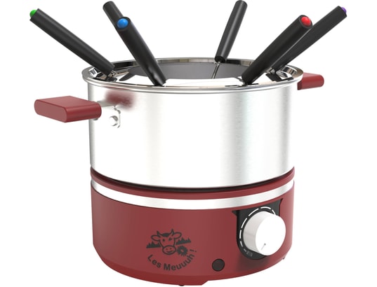 Invitez la convivialité à votre table avec le service à fondue Little Balance Meuuuh Son design original et chaleureux, orné du célèbre motif “Meuuuh”, met aussitôt vos convives dans l’ambiance des repas partagés. Derrière son allure ludique se cache un appareil performant de 650 Watts, capable de faire fondre rapidement vos fromages, chocolats ou huiles de cuisson. Son caquelon de 1,8 litre accueille jusqu’à 6 personnes, parfait pour des soirées raclette revisitées, des fondues bourguignonnes entre amis ou des douceurs au chocolat en famille. Le thermostat réglable assure une maîtrise parfaite de la température, tandis que le revêtement antiadhésif sans PFAS garantit une cuisson saine, sans accroche et facile à nettoyer. Les six fourchettes colorées à manche froid incluses apportent une touche de gaieté tout en évitant les confusions à table. Compact, léger et pratique, il s’impose comme l’incontournable des repas festifs. Un appareil plein de caractère, pour savourer le plaisir d’être ensemble !