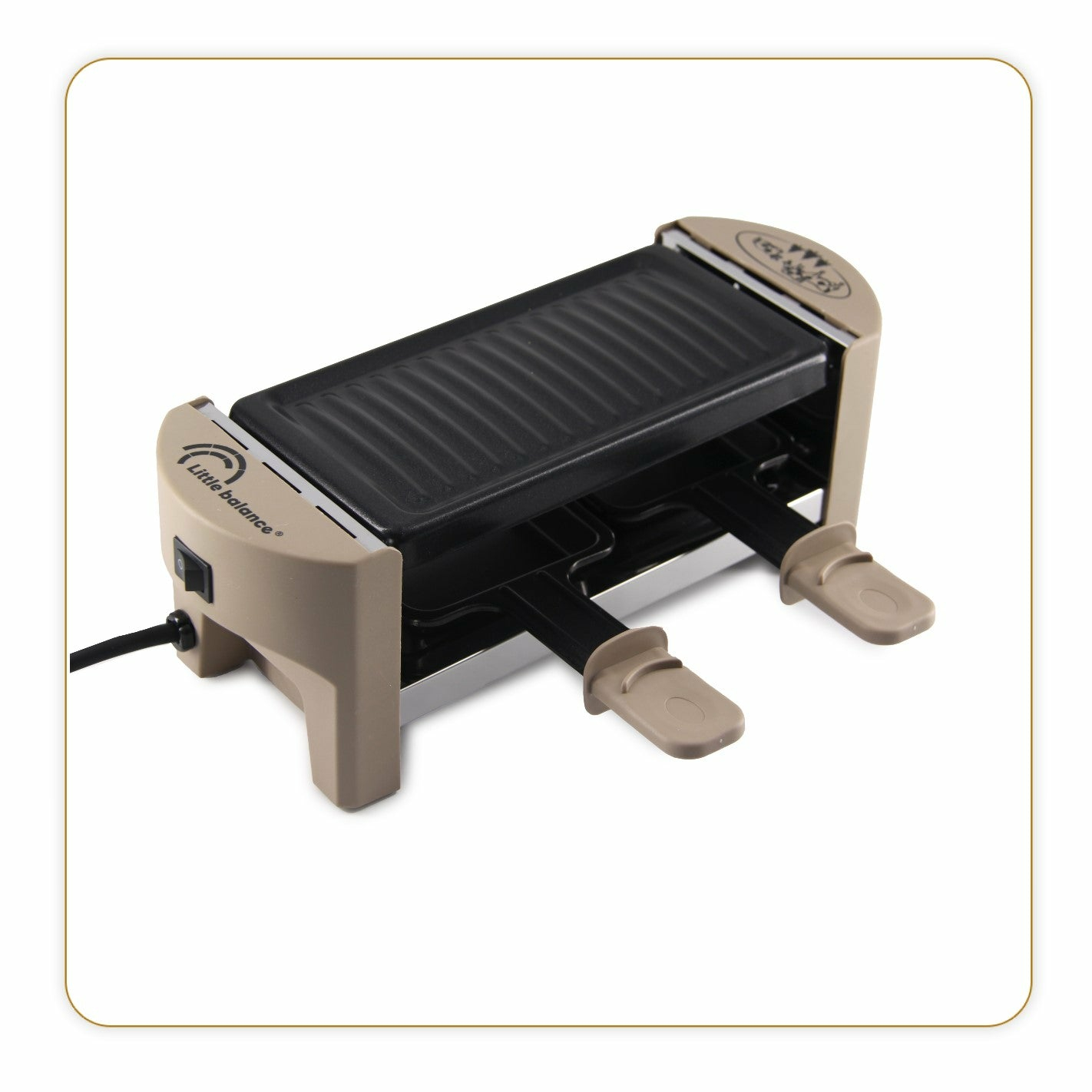 La raclette compacte qui allie chaleur, naturel et gourmandise ! La Raclette 2 Meuuuh...! de Little Balance est l’appareil parfait pour vos repas à deux. Avec son design Muscade élégant et chaleureux, elle apporte une touche douce et naturelle à vos soirées raclette. Son format ultra-compact et sa puissance de 320 Watts offrent une chauffe rapide et homogène. Grâce à son grill amovible, elle se nettoie facilement après usage. Les poêlons Cool Touch sans PFAS garantissent une cuisson saine et une manipulation sécurisée. Pratique et complète, elle est livrée avec 2 spatules et 2 planchettes pour une expérience raclette clé en main.
