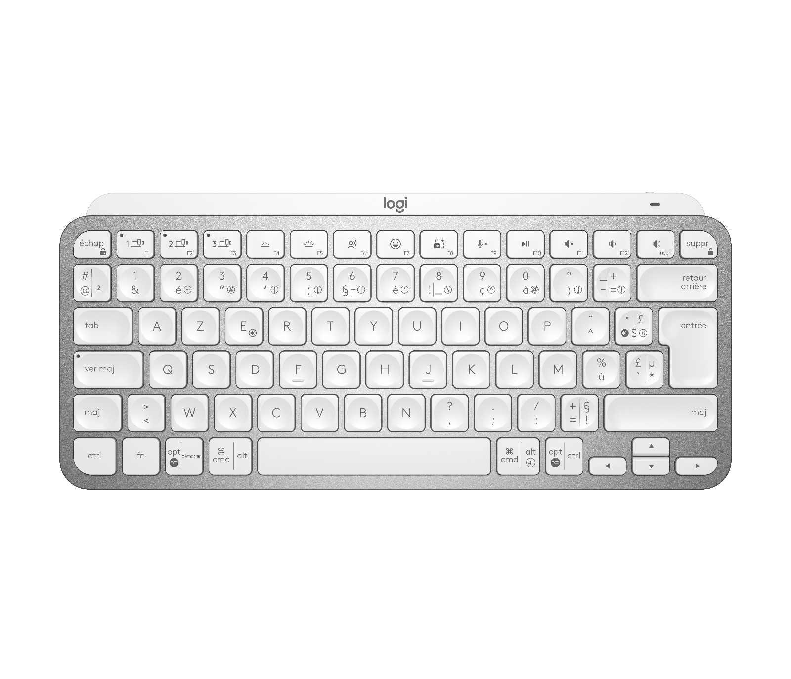 Logitech Master MX Keys Mini. Facteur de forme du clavier: Mini. Style de clavier: Droit. Technologie de connectivité: Sans fil, Interface de l'appareil: RF sans fil + Bluetooth, Disposition des touches du clavier: AZERTY. Type de rétro: LED. Utilisation recommandée: Bureau. Couleur du produit: Gris