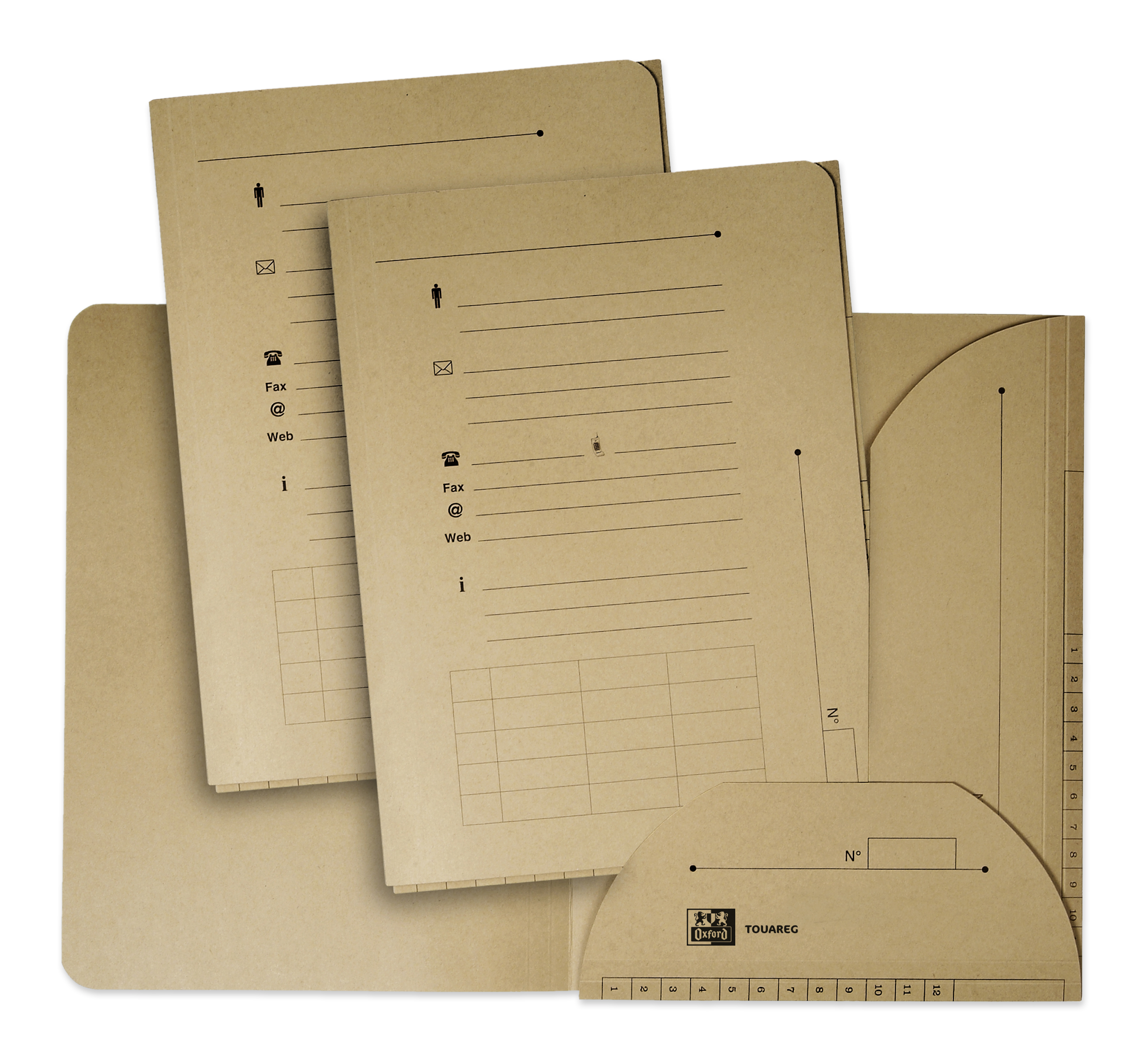 ENVIRONNEMENT : Les sous-dossiers suspendus sont en carte totalement recyclée et recyclable, sans colorant ni chlore. La matière carte est issue de forêts certifiées pour leur gestion écologique et environnementale. CAPACITE : Les sous-dossiers Touareg disposent d'une bonne capacité car ils peuvent accueillir chacun 200 feuilles en moyenne. PERSONNALISATION : Des zones pré-imprimées sont présentes sur la face avant et sur les tranches latérales des sous-dossiers, permettant d'organiser le classement des documents selon ses besoins. Des symboles sont également pré-imprimés et facilitent l'écriture des informations (numéro de téléphone, fax, e-mail...) Ce produit est disponible sous les versions de couleurs suivantes : Beige Naturel