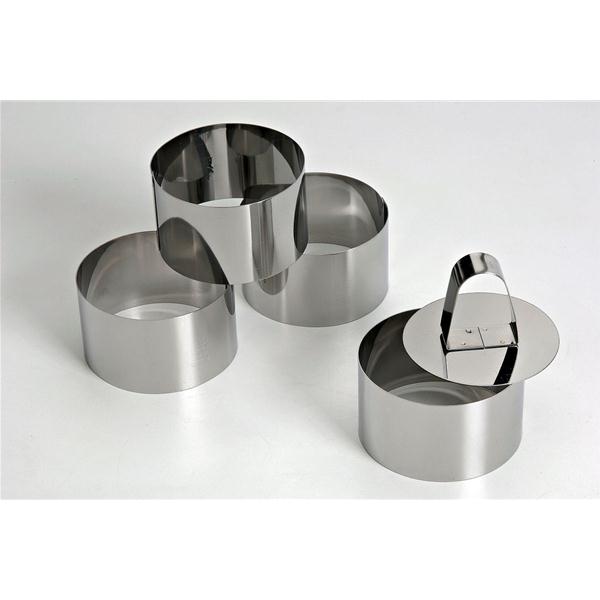 Lot de 4 cercles à mousse + poussoir - Idéal pour de belles présentations assiettes pour épater vos convives - Diamètre 10 cm - Hauteur 4,5 cm - Passe au four et au lave-vaiselle.