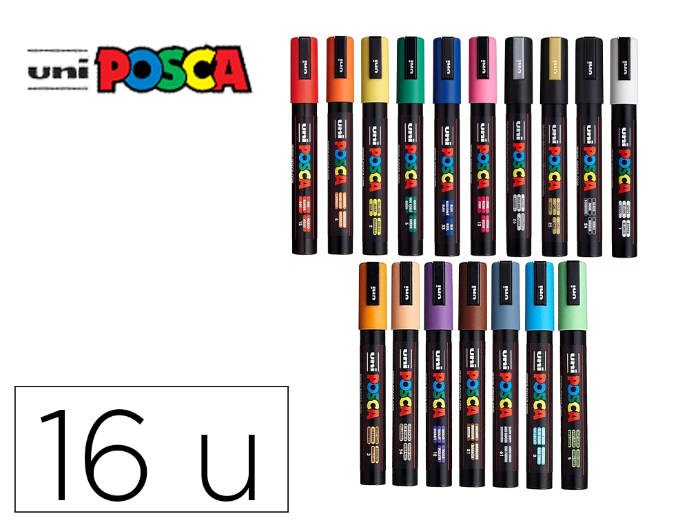 Marqueur Posca PC7M Pointe Conique Trait 4,5-5,5mm - Coloris Assortis - Boîte de 16 unités