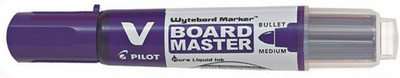 Le marqueur Pilot V-Board Master est conçu pour une utilisation sur des surfaces lisses telles que les tableaux blancs. Il offre une encre effaçable à sec, permettant une utilisation pratique et propre. Ce modèle particulier est de couleur violette et dispose d'une pointe ogive large de 6 mm, idéale pour des lignes épaisses et visibles.